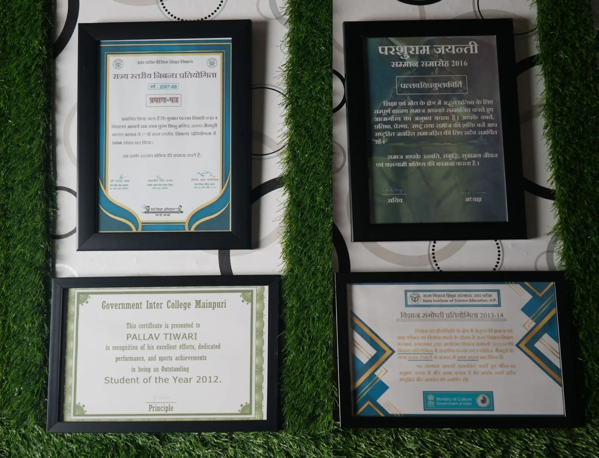 Alongside science, Pallav’s love for writing and oratory became a powerful expression of his ideas. His essays have been awarded by several national bodies, including Ministry of Women & Child Development, Ministry of Environment, Forest and Climate Change, Ministry of New and Renewable Energy. He secured 1st Position in multiple essay and speech competitions at the state level, including the 27th U.P. State Literary and Debate Championships.