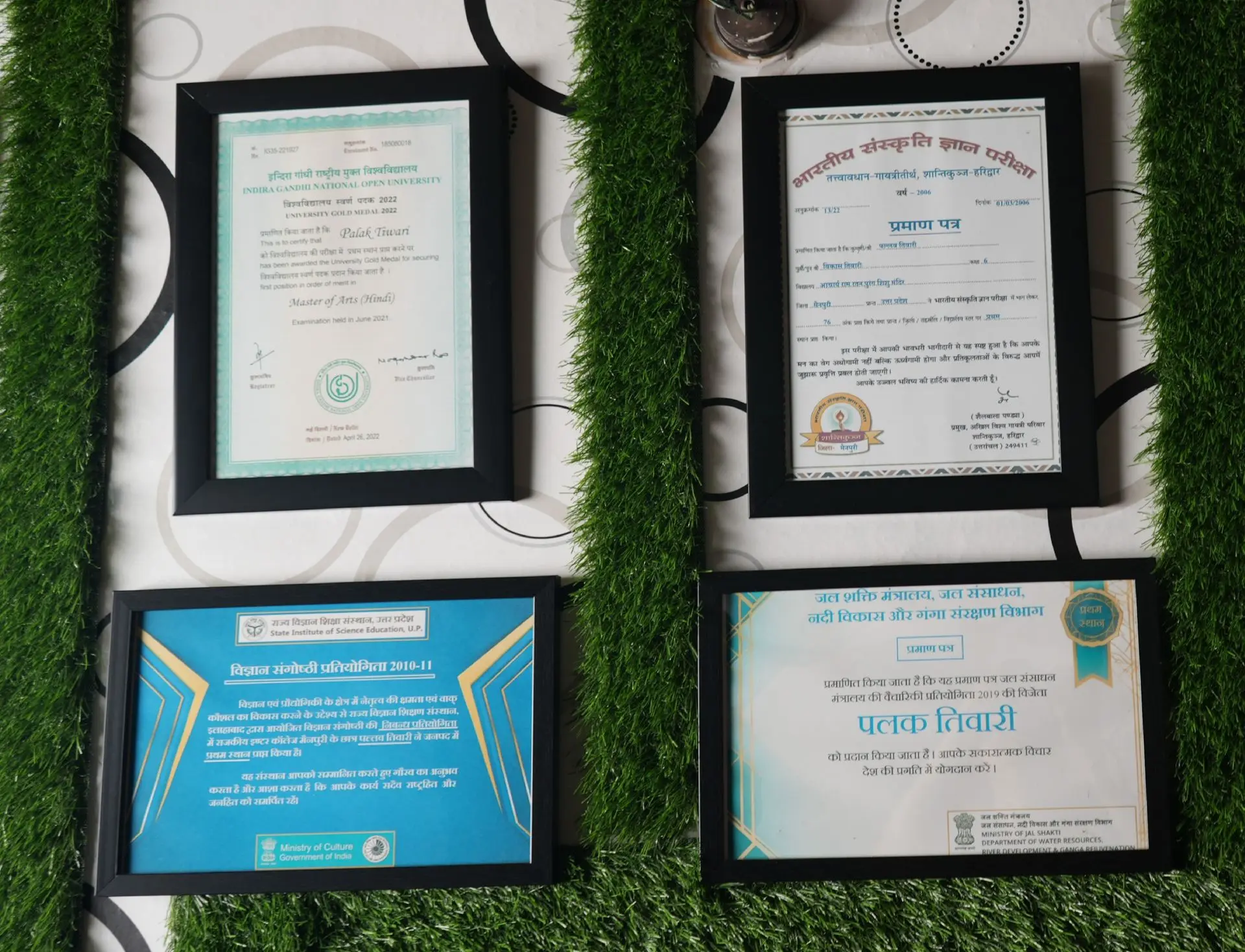 Deeply rooted in Indian cultural and literary traditions, Palak was awarded the "Viprakulkirti Samman" for academic study on Tulsidas Jayanti and received state-level honors in Hindi literary competitions. She excelled in poetic acting and was felicitated by Padma Shri Nand Kishore Nautiyal. Her passion for Hindi literature was further affirmed through top honors during Hindi Diwas Samaroh and consistent literary accolades at school and district levels.